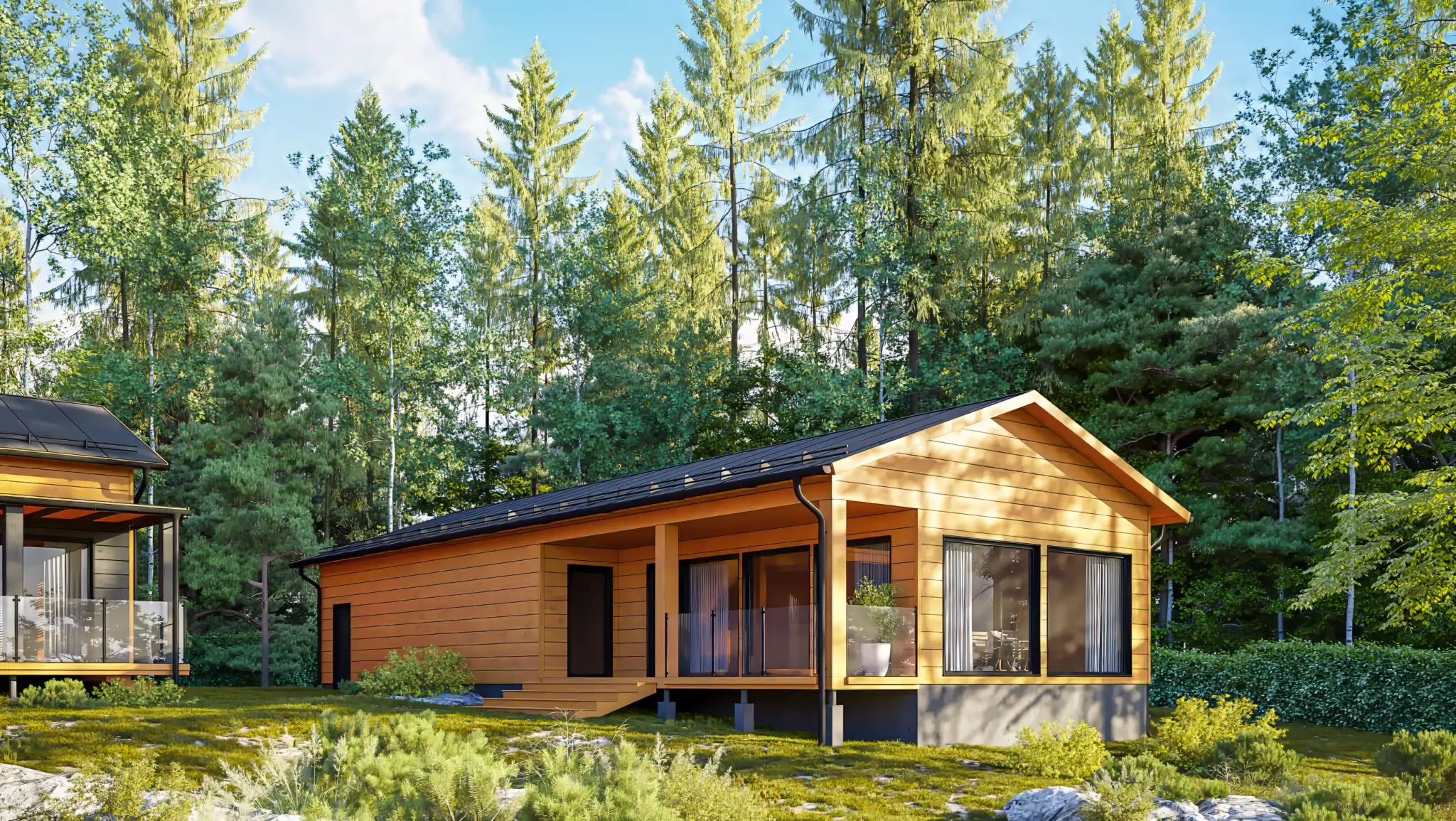 The standard model is made from 202m thickness non-sinkable log, which is covered by the best Kingspan insulation. The exterior is covered with 21mm cladding board (optional to add thermally treated cladding board)